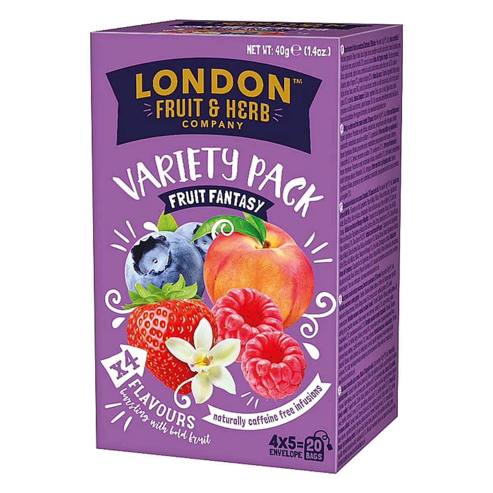 Contains Peach Paradise, Strawberry & Vanilla Fool, Raspberry Rendezvous and Blueberry Bliss infusions.