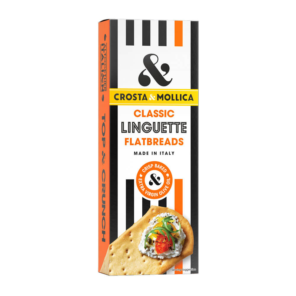 Made in Italy in the traditional local style of Piemonte and Liguria, our crisp Linguette are stamped into their distinctive shape, pin-pricked after the dough has been proved, then sprinkled with salt and baked to perfection. Rich with extra virgin olive oil flavours and aromas, they’re a perfect addition to any antipasti platter.