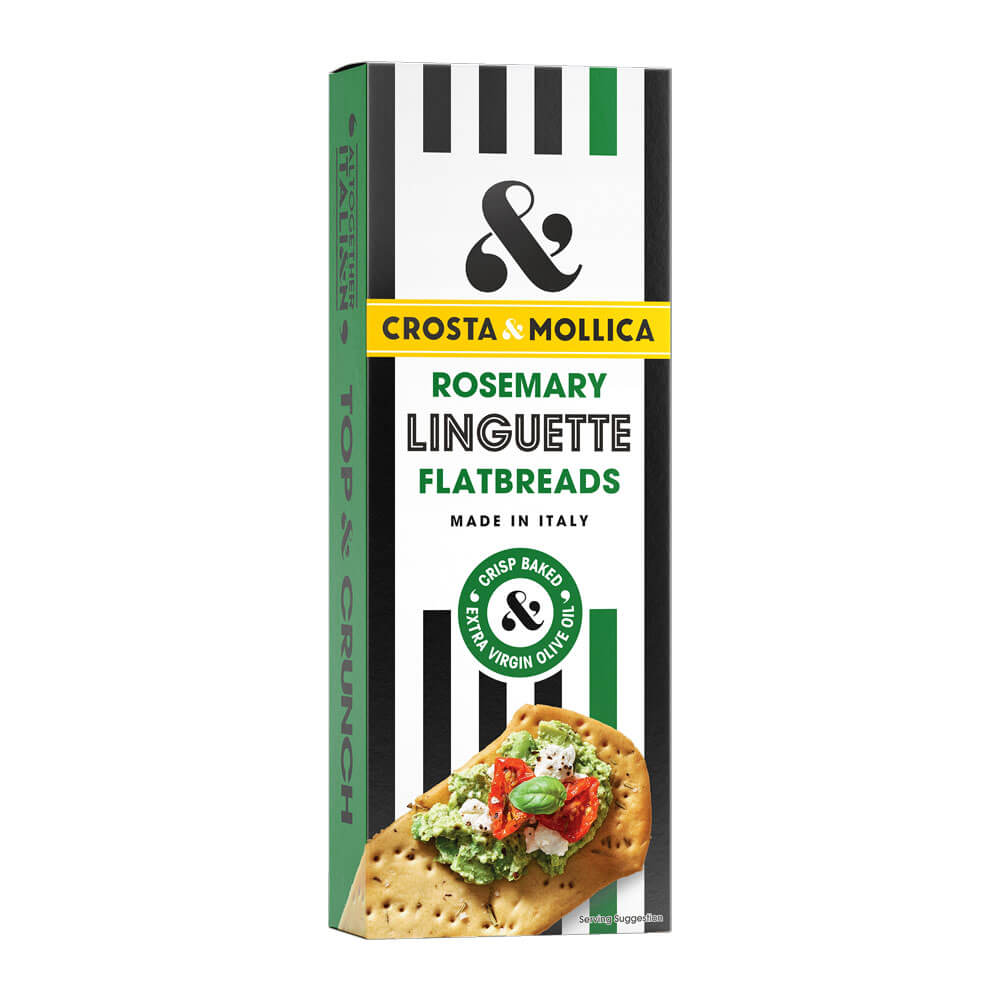 Made in Italy in the traditional local style of Piemonte and Liguria, our crisp Linguette are stamped into their distinctive shape, pin-pricked after the dough has been proved. This floral Rosemary addition adds a vibrant green spindles of aromatics to the original Classic Linguette recipe.