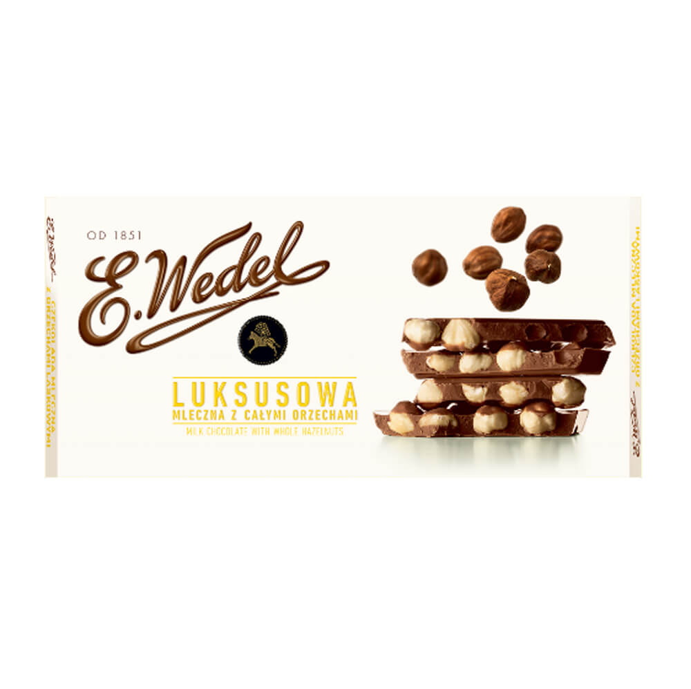 Milk chocolate with hazelnuts from Wedel is a synonym for excellent taste created by combining chocolate liquor with carefully selected whole nuts. A perfect choice for those who would like to savour the taste of exceptionally nutty chocolate.