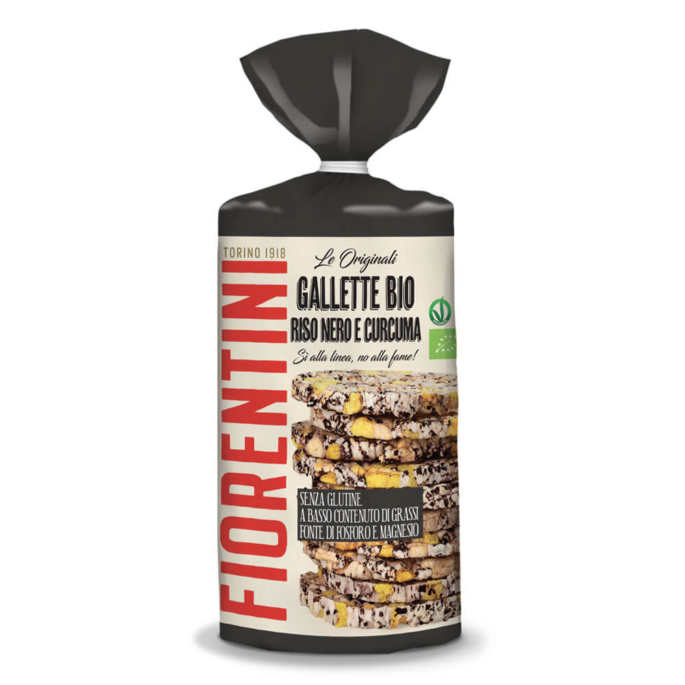 Our black rice and turmeric biscuit is crunchy and tasty. The flavour of Nerone rice meets the unmistakable taste of turmeric. Both are ingredients with multiple nutritional properties: Nerone rice, a variety of brown rice, is a precious source of minerals such as phosphorus and magnesium. Turmeric, an Indian spice with a golden colour and unique flavour, is rich in benefits for the body. This organic, low-fat biscuit is excellent instead of bread, as a snack or appetizer, even stuffed with sweet or savoury ingredients.