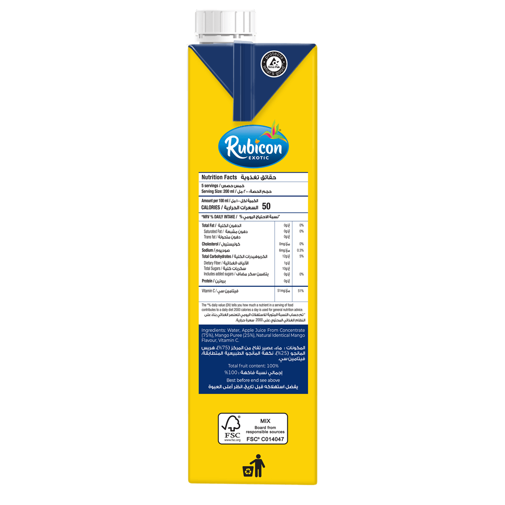 Enjoy the world’s finest mangoes in all their glory! The natural full-bodied sweetness of Rubicon’s No Sugar Added Mango Juice is delightfully refreshing and fulfilling. We use 100% fruit juice from the best Indian Alphonso mangoes so you can experience the full exotic richness of this delicious fruit all year round.