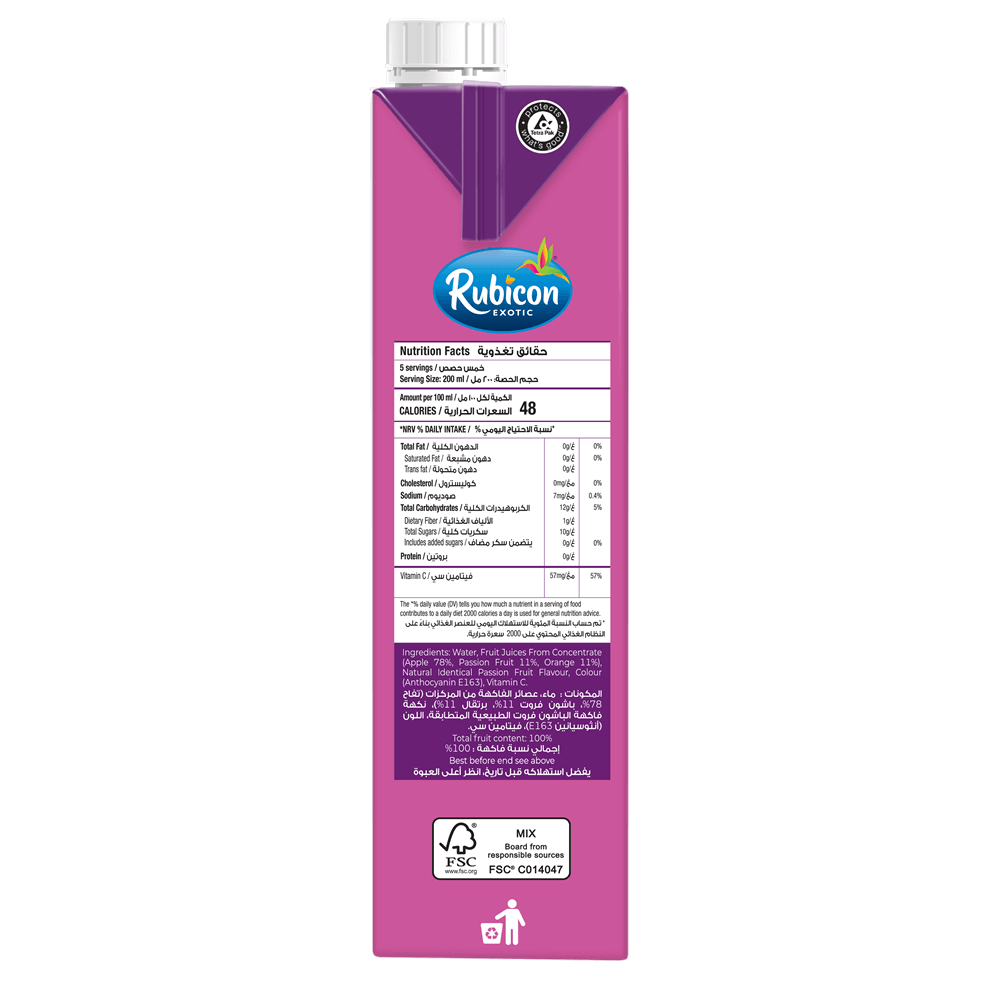 With its brilliant orange tones and stunning sweet-tart flavour, Rubicon No Sugar Added Passion Fruit juice is an enchanting treat beyond compare. Using perfectly ripe Ecuadorian passion fruits, we take care of the painstaking process of extracting its glorious juice to give you joy-inducing refreshment.