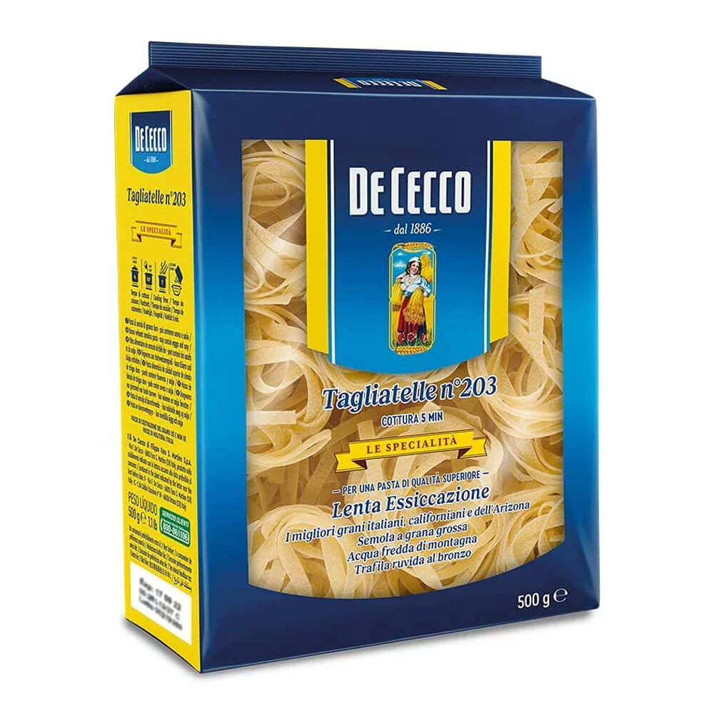 Discover the rich tradition of Italian pasta with De Cecco Tagliatelle Nidi Semola. This premium 500g pack features authentic tagliatelle made from the finest durum wheat semolina, ensuring a robust texture that holds sauces beautifully. With its distinctive ribbons of pasta, De Cecco Tagliatelle Nidi is perfect for a variety of dishes, from classic ragù to delicate cream sauces. Each nest of pasta cooks evenly and retains its shape, making it an ideal choice for both everyday meals and special occasions.
